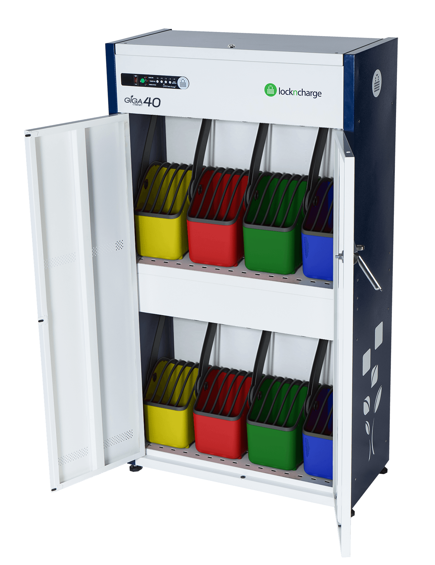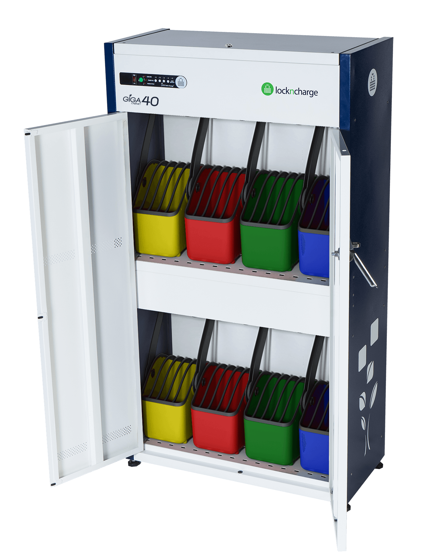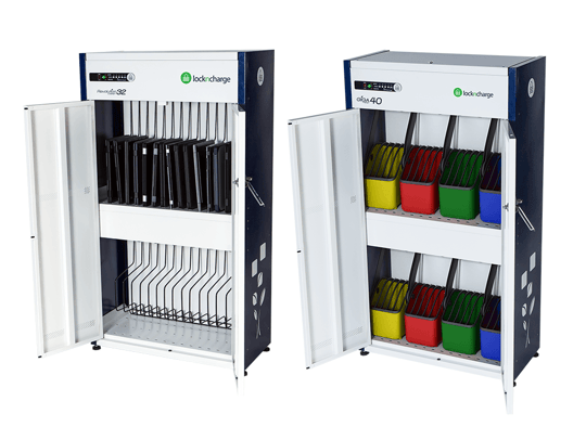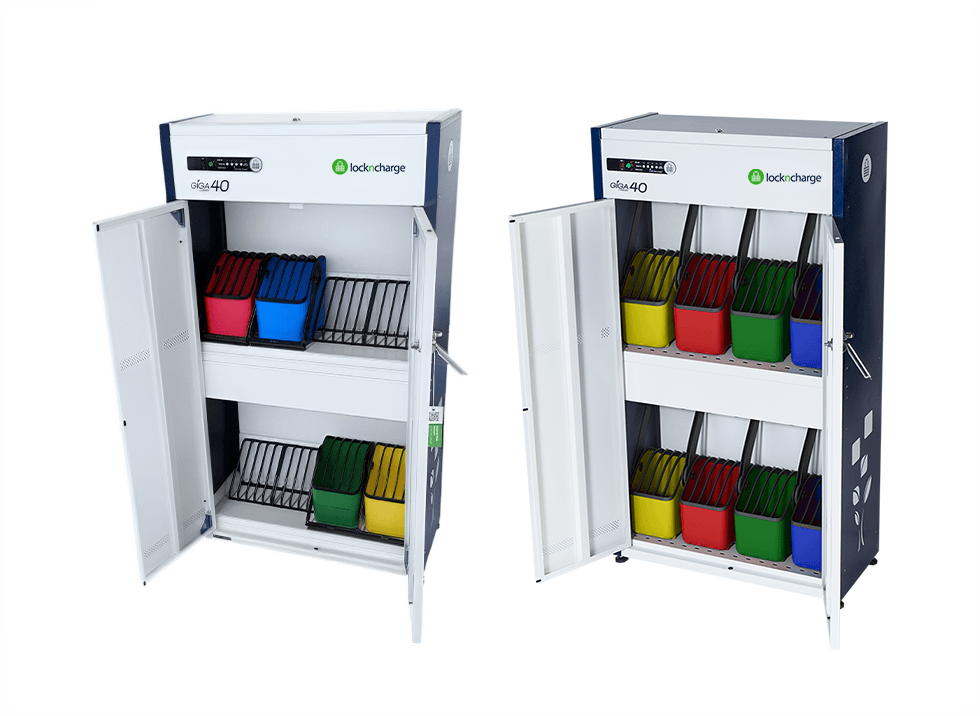 - Charge up to 32 or 40 laptops or tablets in one streamlined cabinet.